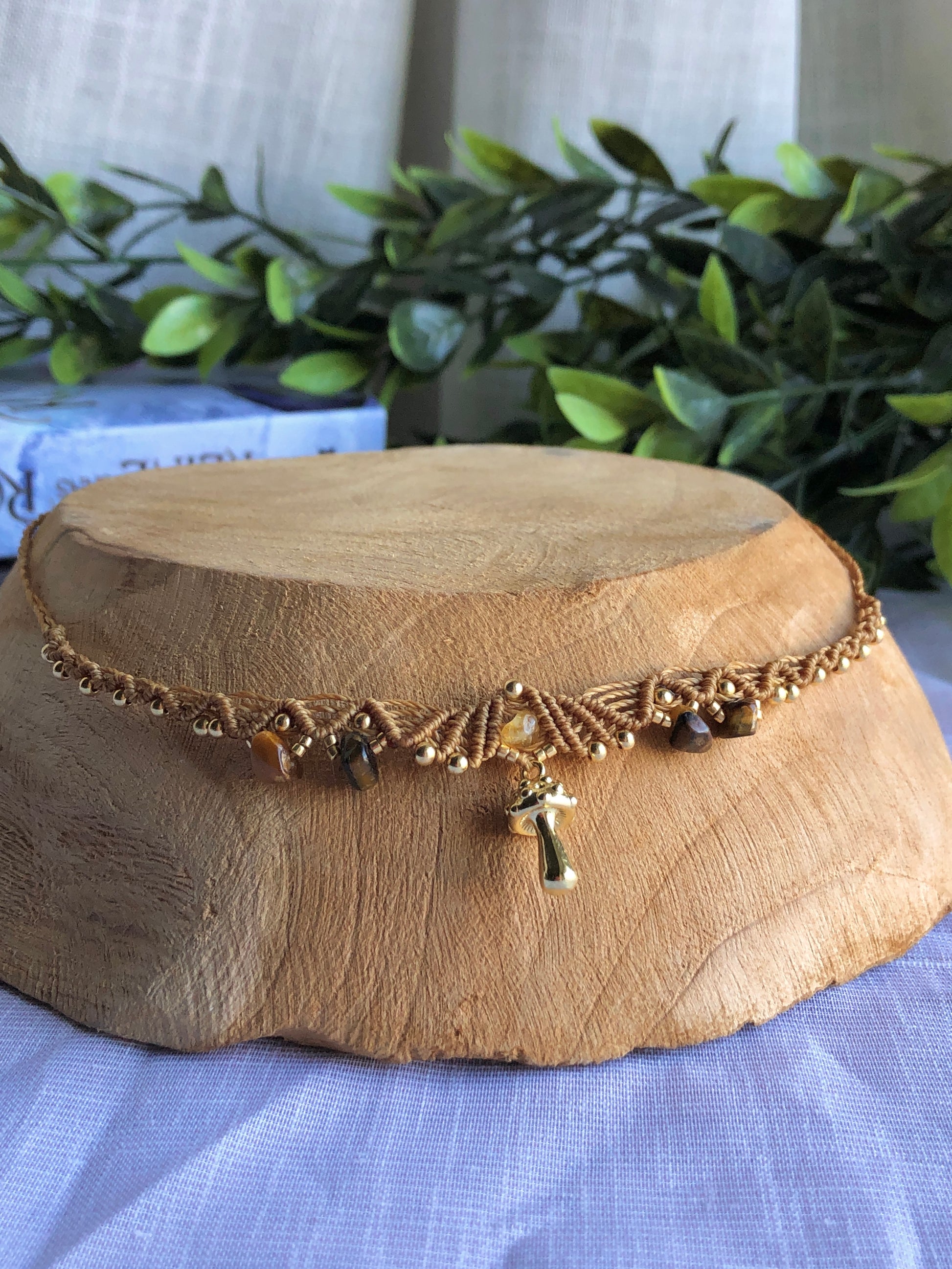 - pierres naturelles : oeil de tigre (marron doré), citrine (jaune transparent)