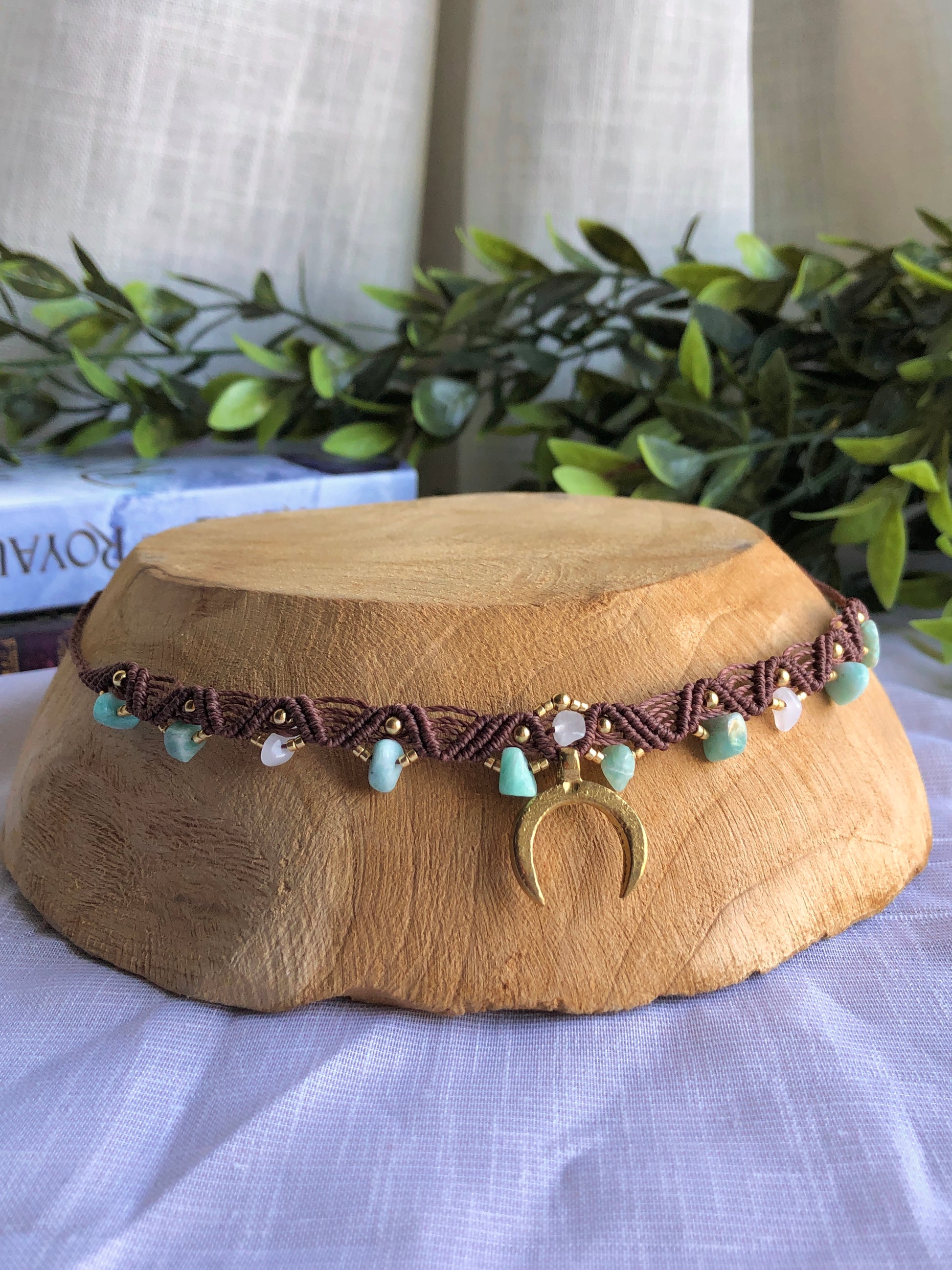 Chaque collier fait à la main contient des pierres formées différemment, pour que chaque femme reçoive un collier aussi unique qu’elle. Chaque bijoux contient une partie de votre histoire, avec une symbolique forte, toujours inspiré de ces livres et mondes fantastiques que vous appréciez tant. (voir photo 3)