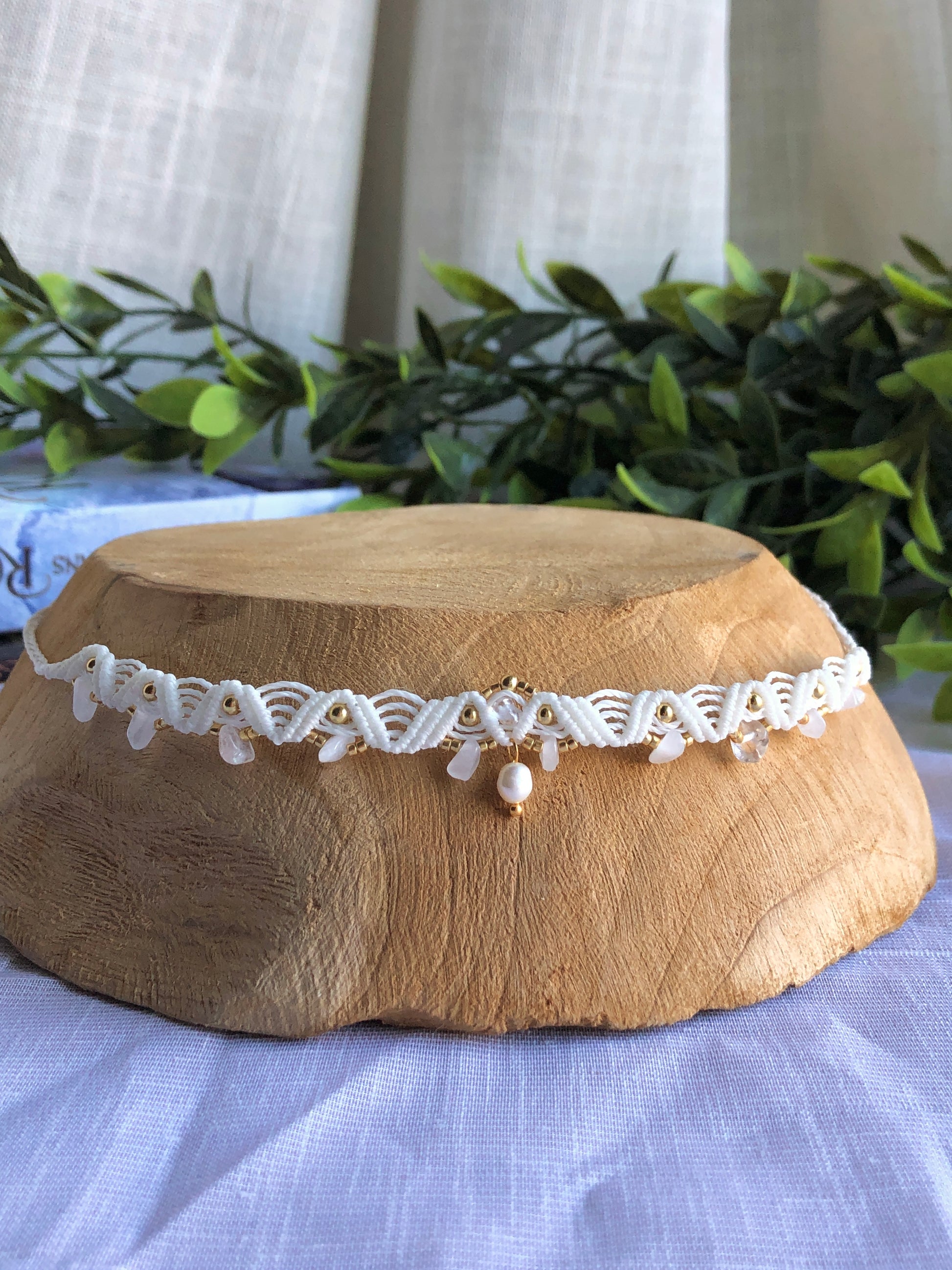 Chaque collier fait à la main contient des pierres formées différemment, pour que chaque femme reçoive un collier aussi unique qu’elle. Chaque bijoux contient une partie de votre histoire, avec une symbolique forte, toujours inspiré de ces livres et mondes fantastiques que vous appréciez tant. (voir photo 3)