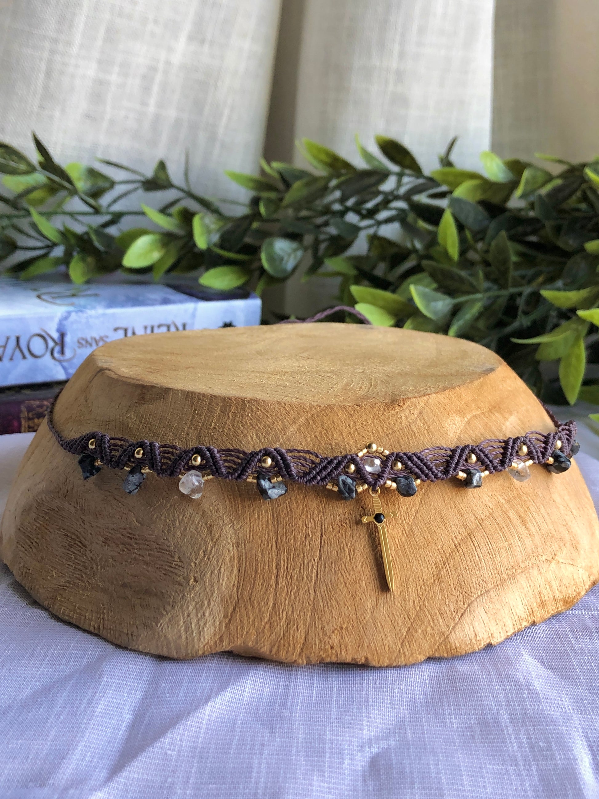 Chaque collier fait à la main contient des pierres formées différemment, pour que chaque femme reçoive un collier aussi unique qu’elle. Chaque bijoux contient une partie de votre histoire, avec une symbolique forte, toujours inspiré de ces livres et mondes fantastiques que vous appréciez tant. (voir photo 3)